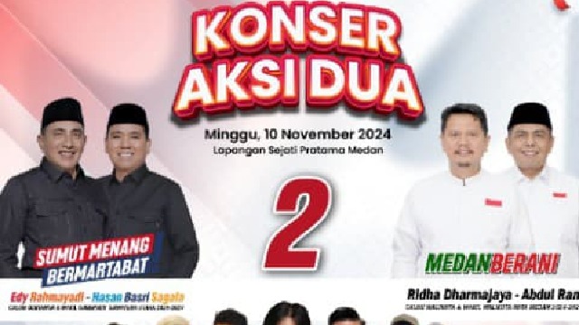 Dikatakan, Kampanye Akbar bertajuk 'Konser Aksi Dua 2' itu juga berbarengan dengan kampanye Pasangan Calon Gubernur dan Wakil Gubernur Sumatera Utara (Sumut) Edy Rahmayadi dan Hasan Basri Sagala.